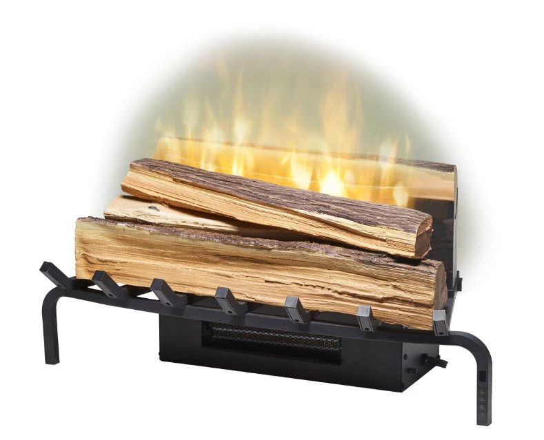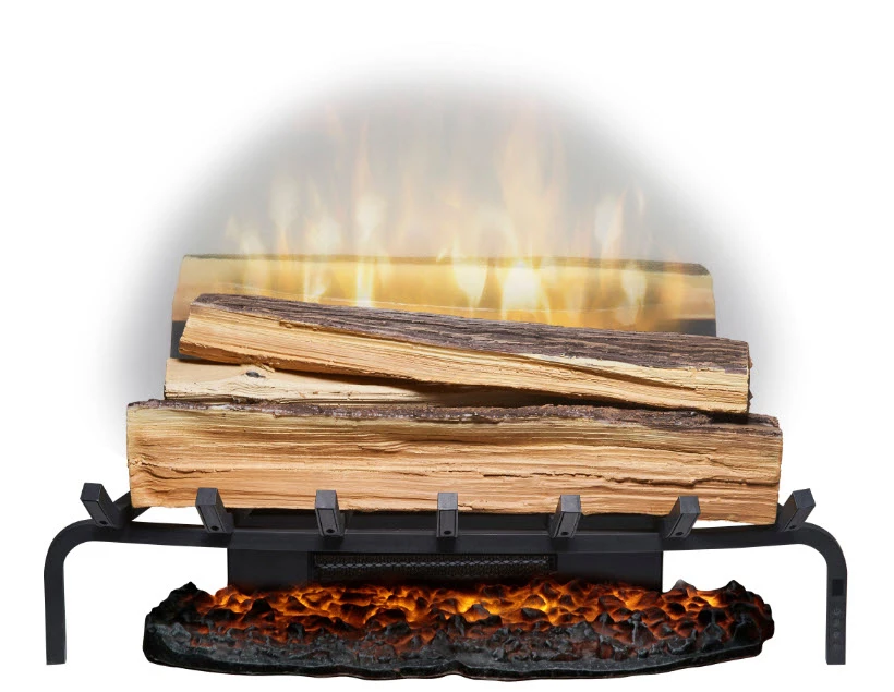 | The fresh cut logs let you enjoy the natural beauty of split firewood along with the anticipation of a fire that is ready to burn. With three stacked logs nestled in a grate, showing off their splintered edges, you get the feel of freshly chopped wood without ever swinging an axe.