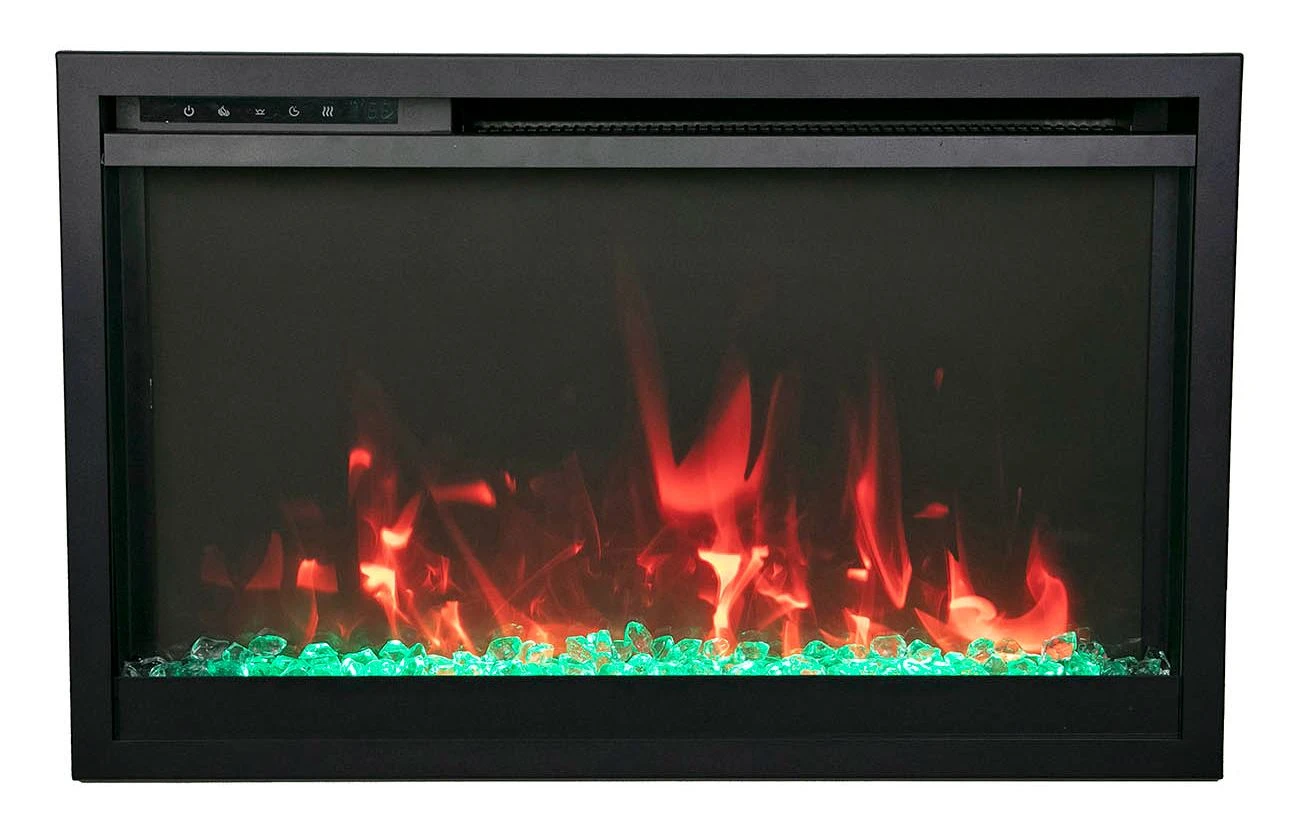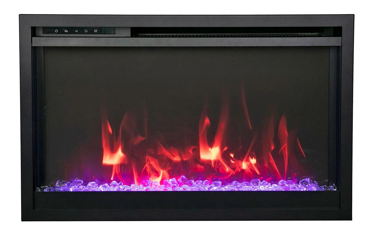 A elegant flame display dances across the back of the fireplace, creating movement that is sure to catch your eye. The heat settings can be adjusted with a simple push of a button. During the warmer months, you can set the flames to display without heat – making it perfect to use all year long. Features: