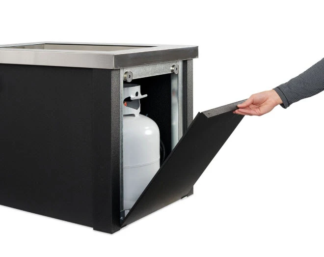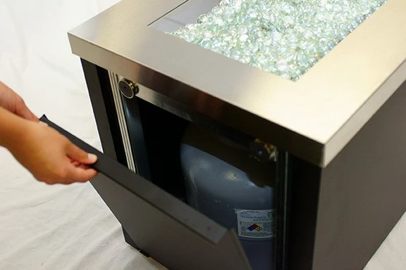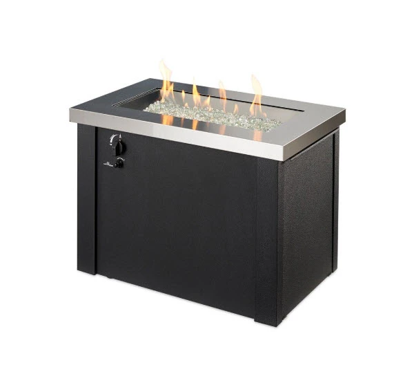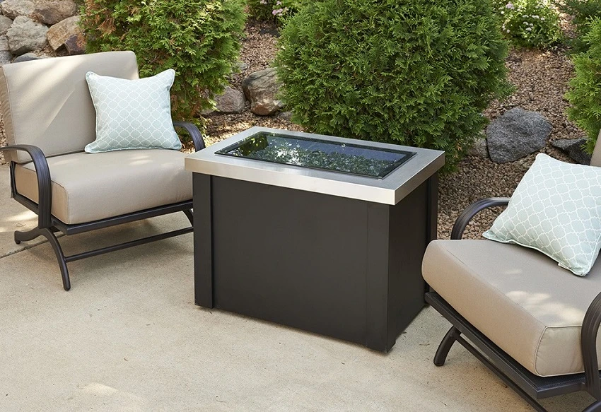 The Stainless Steel Providence Gas Fire Pit Table brings the family together in a modern and simple fashion. Watch the mesmerizing collection of flames reflect off of a stainless steel trim top for the ultimate wow factor. A black powder-coated metal base completes the ultramodern look.