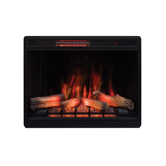 To add warmth and inviting ambiance to your home, add this 33” infrared quartz electric fireplace insert to your mantel or TV stand. The infrared quartz heat helps to maintain the natural humidity in the air, resulting in moist, comfortable heat without drying out the room’s air. Providing supplemental zone heating for up to 1,000 square feet and showcasing stunning flame effects, this electric fireplace is sure to create a welcoming environment. Patent pending 3D flame effect technology offers a layered flame effect to create a truly realistic fire experience. The customizable 3D flame effect technology offers 125 selectable effect options to create your ideal fire, displayed on a realistic log set and ember bed. Five flame speed settings allow you to adjust from a fast roaring fire down to a gentle flickering flame, while five adjustable brightness settings allow you to select the perfect fire display for any occasion. Flame effect colors include Spectrafire, Sapphire, Amethyst, Campfire, Midnight Fire and auto cycle. The flame effects can be used with or without heat for year-round enjoyment. Change the settings easily using the control panel on the unit or with the included remote control. Use this fireplace worry-free as it is equipped with patent pending Safer Plug™ and Safer Sensor™ fire prevention technology. Safer Plug™ continuously monitors the temperature of the plug, and will turn off automatically if overheating occurs. Safer Sensor™ fire prevention technology alerts you when the heater is obstructed and will automatically shut off to prevent damage. This insert powers the LED lights on compatible TV stands and mantels.