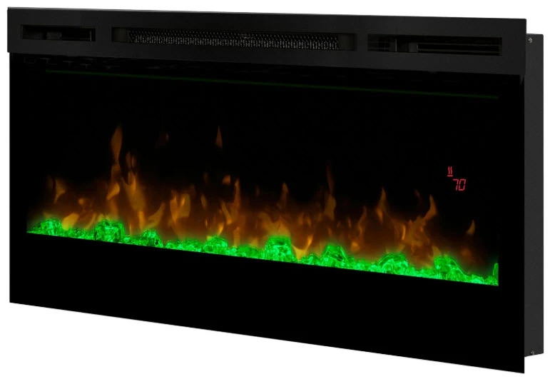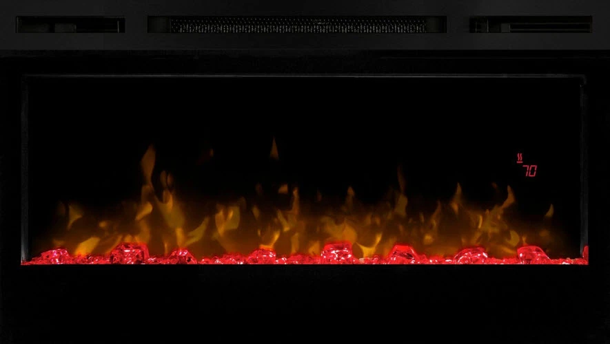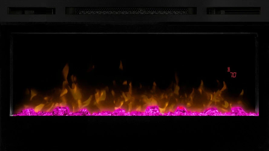 | The best-selling electric linear fireplace just got better with the all new Prism Series. Sparkling with intensity in a full spectrum of RGB colors, the Prism flame effect illuminates the diamond-like acrylic ice ember bed in a show-stopping effect. Complete with a powerful and efficient fan-forced heater, this fireplace adds comfort and ambiance to any space. Plugged in or hard-wired, hung on the wall or built-in; the Prism is beautifully versatile.