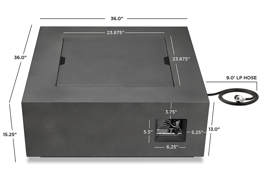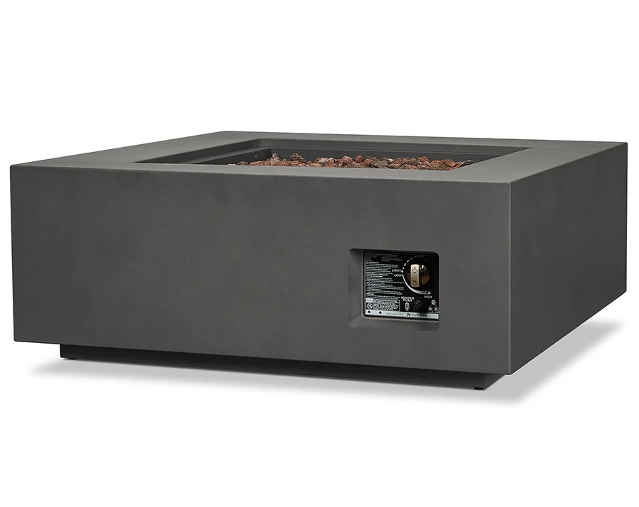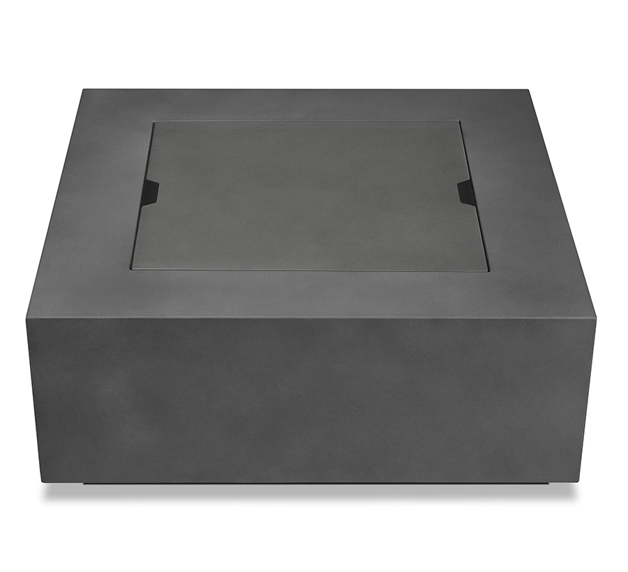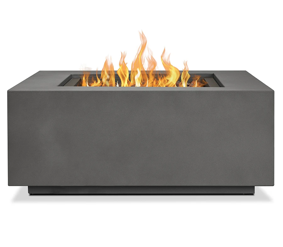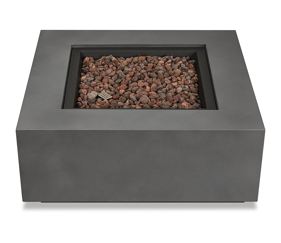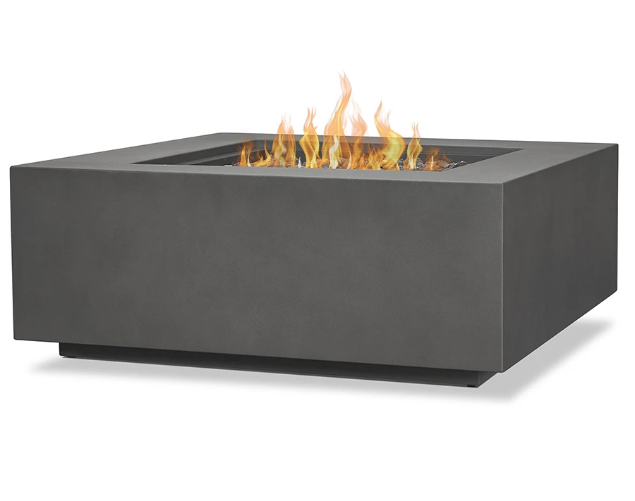 | The Aegean gas fire table is a welcome addition to most outdoor living spaces. Â Adding warmth and a relaxing ambience for any occasion. Â Available in mist gray or weathered slate and in multiple sizes, the steel table is finished with powder-coated paint for added weather resistance. The Aegean comes complete with a steel lid for increased functionality, red lava rock, a polyester protective cover, and can be converted to Natural gas by a Certified Gas Technician with the conversion kit that is included with the table. Enhance the look of your table with optional accessories like a propane tank cover, gas hose cover, and Real Flame fire glass.