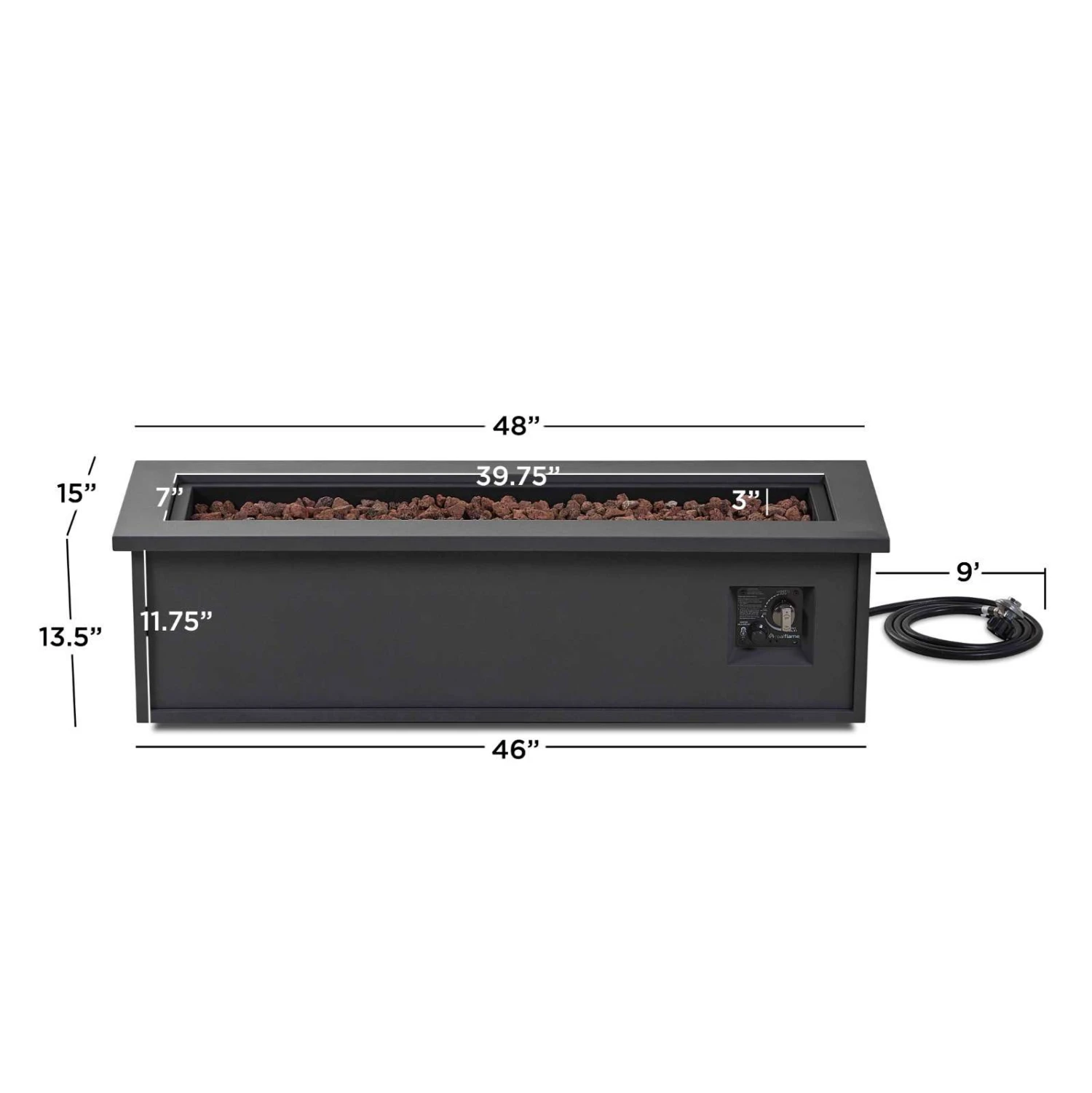 | Instantly improve your backyard or patio with the Mila propane fire table. This steel fire pit has a fresh, contemporary style and is the ideal centerpiece for outdoor entertaining or relaxation. When not in use, transform this fire table into a useful outdoor coffee table with the included matching burner lid. Available in a weathered slate finish.