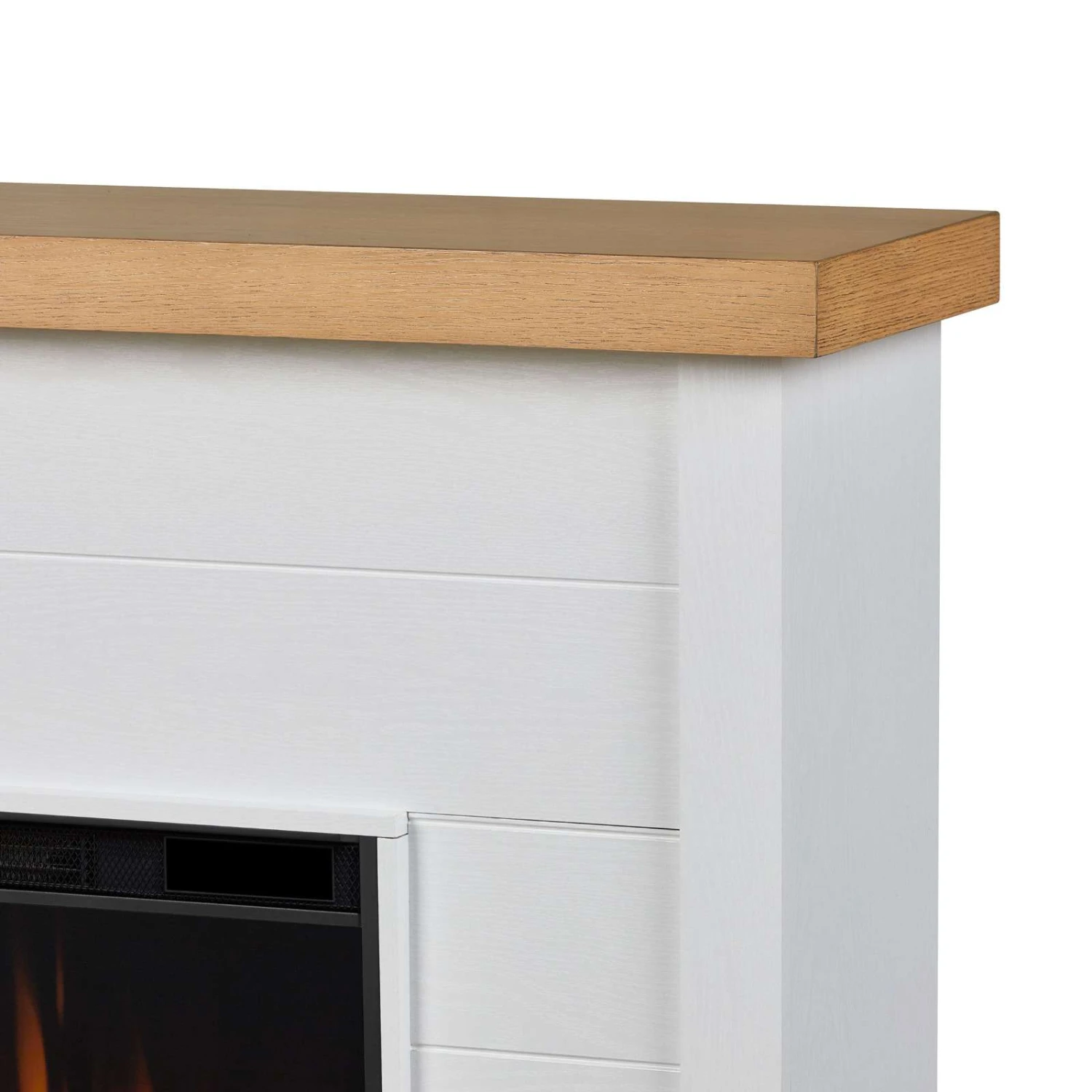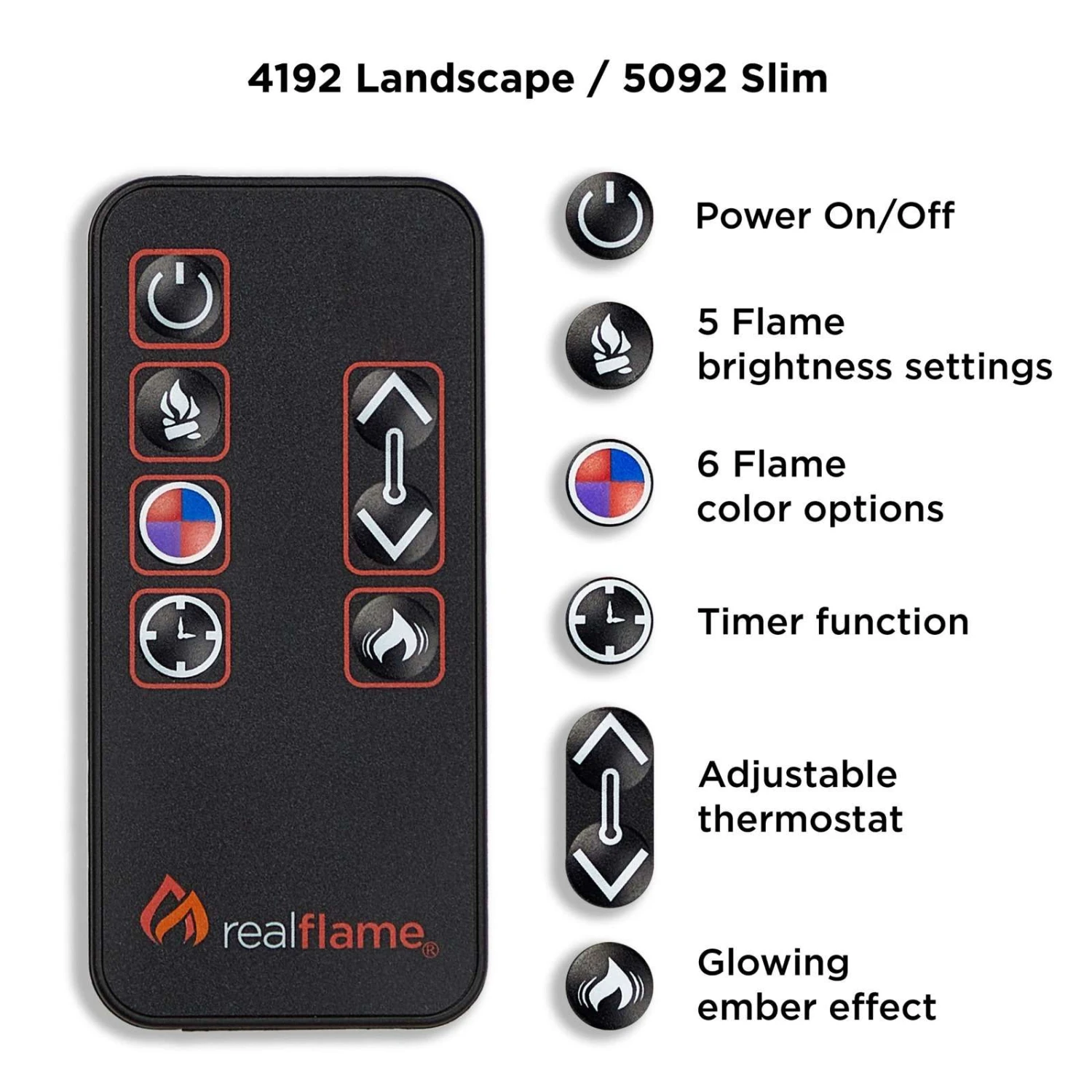 | Blending relaxing charm with modern sophistication, the Marshall electric fireplace will give your home a timeless, farmhouse design appeal. Part of the Real Flame® VividFlame Slim Series, the space-saving electric firebox mimics the look of a real, flickering fire, but does not require a chimney or vents and conveniently plugs into a standard outlet. This free-standing indoor fireplace features six flame colors, five flame brightness levels, adjustable thermostat, timer function and automatic safety shut-off. The electric fireplace insert provides supplemental heat for rooms up to 1,000 sq ft or the heater can be turned off so you can enjoy the comforting ambiance of a glowing fireplace year-round. Mantel, firebox with log set, hardware and remote control are included.