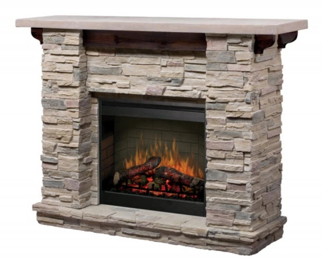 | The Featherston fireplace will impart the relaxed mood of a mountain lodge to any room you choose. The warmth of wood accents in the recessed header and mantel brackets serve as a rustic complement to the crisp architectural ledge rock theme.