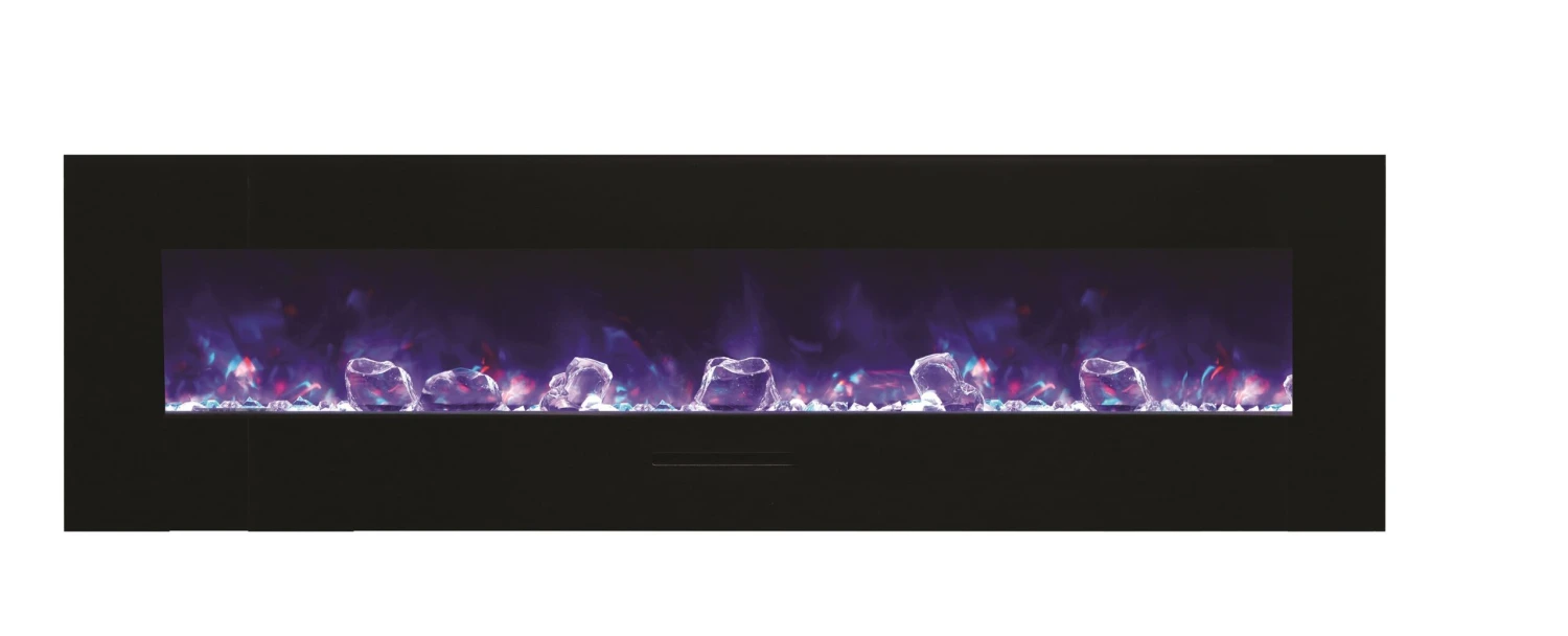 | The WM-FM-72-8123-BG is a stunning electric fireplace featuring Amantii’s exclusive FIRE & ICE® flame presentation. The WM-FM fireplace series can be built in flush or wall mounted with included brackets. Heat is emitted from a single slot in the face of the surround. 13 colors of surround back-lighting illuminate spaces creating even more ambience.