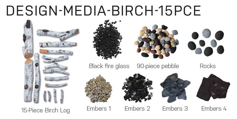 Included Accessories: The Symmetry-Smart series electric fireplaces come with Birch 10 pc logs, decorative glass media, surround, and a remote. Features: