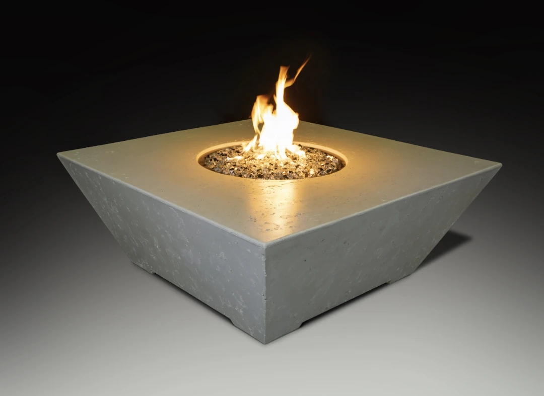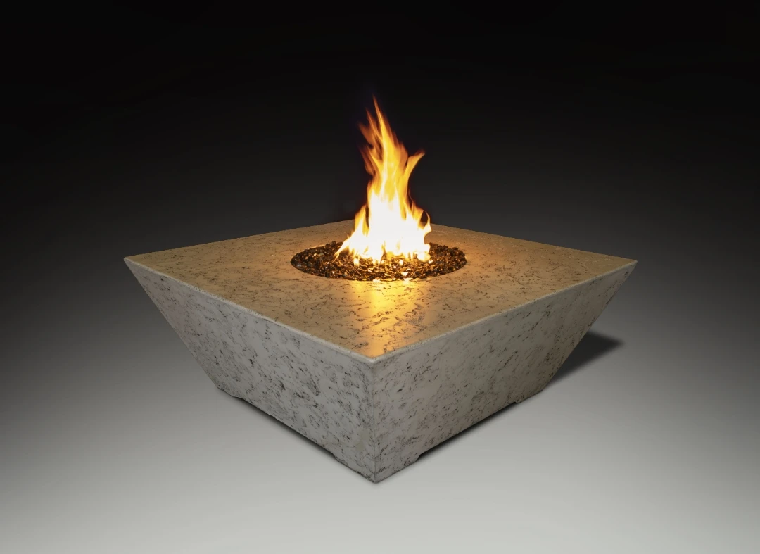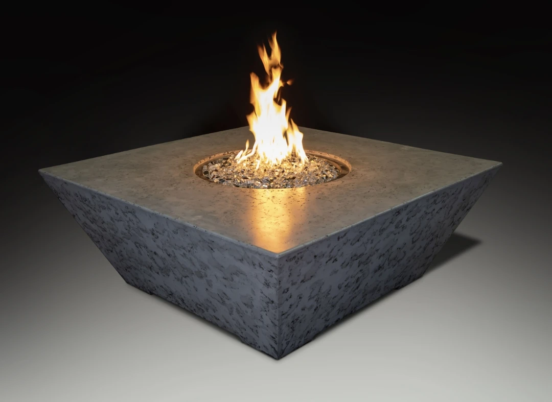 | The Olympus Fire-Table collection is constructed from GFRC (Glass Fiber Reinforced Concreted) with color dyed through in through & molded off our proprietary designs. Our Athena Olympus Round Fire Table are a great way to add warmth and ambiance to your backyard. All fire tables are available in Natural Gas or Liquid Propane, match lit or Hot Surface Electronic Ignition & 5 stunning unique colors. For the media, add one of seven unique ½” Reflective glass colors. Rust and Bone Color Fire Tables Finishes are Special Order Only with an approx. 4 week lead time.