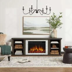 73″ Ellistone Weathered Gray Infrared TV Stand Electric Fireplace