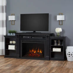 83″ Tracey Grand Black Entertainment Center Infrared Electric Fireplace